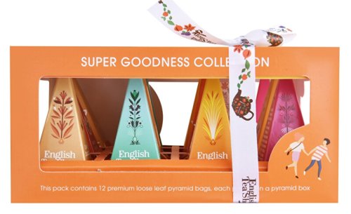 Dárková kolekce Super goodness čajů obsahuje kvalitní čaje v bio kvalitě. Sada obsahu 12 pyramidek sypaných čajů. Sada je určena pro všechny milovníky čajů, hlavně pro ty, kteří rádi ochutnávají různé druhy čajů.