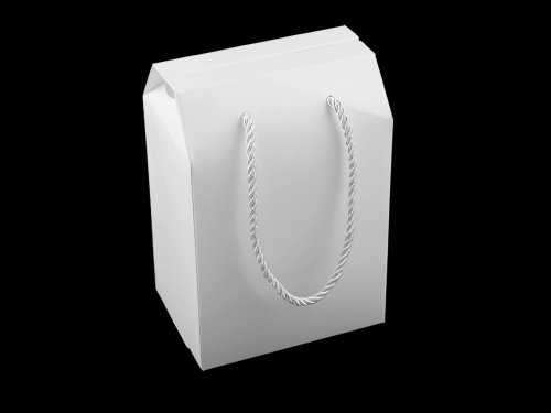 Dárková krabička s uchy připomíná dárkovou tašku. Nahoře má rafinované zavírání. Můžete ji použít na menší dárky. Ucha jsou z kroucené saténové šňůry. Krabičku dodáváme v rozloženém stavu (21 x 27,5 cm). Složíte ji jednoduše podle vyznačených ohýbacích krajů. Krabička nemá atest na potraviny, pochoutky a jiné laskominy doporučujeme vložit zabalené v sáčku.