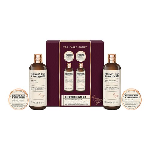 Připravte se na jedinečný zážitek a dopřejte své pokožce i smyslům péči, kterou si zaslouží. Tato exkluzivní kolekce s energizující vůní bergamotu, konopí a santalového dřeva nabízí vše, co moderní muž potřebuje pro každodenní očistu i relaxaci. Mýdlo na tělo i vlasy zajistí svěžest od hlavy až k patě, zatímco balzám po holení zklidní pokožku a zanechá ji příjemně provoněnou. O čistotu a osvěžení pleti se postará mycí gel na obličej, který šetrně odstraňuje nečistoty a dodává pokožce zdravý vzhled. K dokonalé regeneraci pak přispějí krystaly do koupele, které promění obyčejnou koupel v okamžik hluboké relaxace. V prémiové kolekci péče pro muže The Fuzzy Duck se snoubí divoká krása přírody s gentlemanskou elegancí a sofistikovaným vzhledem. Rustikální estetika inspirovaná přírodními materiály kombinuje vínové a přírodní tóny s bronzovými prvky a s etiketami v typickém lékárnickém stylu. Vytvořeno s jedinečnou vůní, která spojuje hřejivé konopí s jemnými tóny santalového dřeva a špetkou energizujícího bergamotu. Vlastnosti: • čistí a pečuje o pokožku celého těla • s nadčasovou bergamotu, konopí a santalového dřeva • zanechá jemnou a hebkou pokožku • pro každodenní koupelový rituál • ve stylovém, elegantním balení Pleťový mycí gel Čisticí gel na pleť účinně zbavuje potu, nečistot a odumřelých buněk. Je šetrný k pleti, nevysušuje ji, ani nedráždí. Navíc skvěle připraví pokožku na holení. Použití: Naneste na vlhký obličej, napěňte a opláchněte. Mycí gel 2v1 Praktický mycí gel pečuje o pokožku těla i hlavy. Vlasy zanechává přirozeně lesklé a hebké na dotek, zatímco tělo zahalí svěží a energickou vůní. Použití: Naneste na vlhkou pokožku a vlasy, napěňte a důkladně opláchněte. Balzám po holení Osvěžující balzám dopřeje pokožce tu nejlepší péči po holení. Zklidňuje podrážděnou pokožku, hydratuje a předchází zarudnutí a svědění. Zanechá ji hebkou a příjemně provoněnou tóny bergamotu, konopí a santalového dřeva. Použití: Malé množství balzámu naneste do dlaní a rovnoměrně rozetřete na oholenou oblast. Krystaly do koupele Voňavé krystalky dodají koupeli nový rozměr. Provoní celou lázeň, uvolňují tělo a svaly a zanechají pokožku hebkou a hladkou na dotek. Použití: Nasypte do teplé vodní lázně, ponořte se do smyslné vůně a relaxujte. Doplňující informace: • Vegan & Cruelty Free