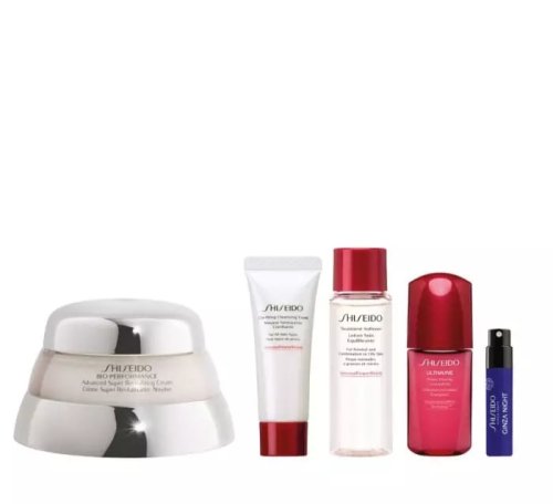 Revitalizační krém Bio-Performance (Advanced Super Revitalizing Cream) 50 ml Hydratační a harmonizující pleťová voda (Treatment Softener) 30 ml Aktivní čisticí pěna (Clarifying Cleansing Foam) 15 ml Pleťové sérum Ultimune (Power Infusing Concentrate) 10 ml Parfémovaná voda Ginza Night EDP 0,6 ml