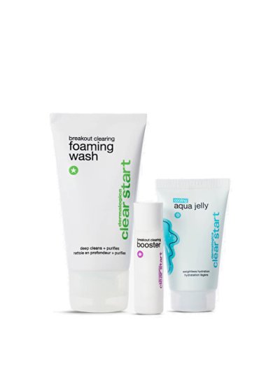 Čisticí pěna pro problematickou pleť Clear Start Breakout Clearing (Foaming Wash) 75 ml Hydratační želé pro mastnou pleť ClearStart (Cooling Aqua Jelly) 25 ml Pleťové sérum pro aknózní pleť Clear Start (Breakout Clearing Booster) 10 ml