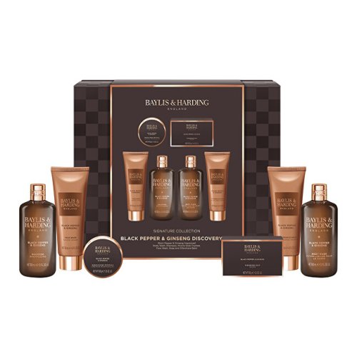 Připravte se na jedinečný zážitek a rozmazlujte svou pokožku pomocí této exkluzivní kolekce produktů s ovocno-kořeněnou vůní. Balzám po holení, mycí přípravky na tělo i pleť a krystalky do koupele jsou perfektní šestkou produktů, kterou ocení každý moderní muž ve své koupelně. S přicházejícími Vánocemi je to také dokonalý dárek pro ty, kdo si zaslouží chvíle odpočinku a péče doprovázené tóny černého pepře a ženšenu. Nadčasová a sofistikovaná pánská kolekce Black Pepper & Ginseng propůjčila svému designu moderní, dynamický vzhled s ikonickou šachovnicovou grafikou a elegantními bronzovo-zlatými detaily. Společně s ovocno-kořeněnými tóny černého pepře, ženšenu, cedrového a santalového dřeva vytváří elegantní kolekci produktů péče o tělo pro všechny gentlemany. Vlastnosti:• čistí a pečuje o pokožku celého těla• s nadčasovou ovocno-kořeněnou vůní• zanechá jemnou a hebkou pokožku i pleť• pro každodenní koupelový rituál• ve stylovém, elegantním balení Sprchový gelSprchový gel vytváří bohatou pěnu, šetrně čistí a nevysušuje pokožku. Zanechá ji hebkou, vláčnou a provoněnou tóny černého pepře a ženšenu.Použití: Naneste na vlhkou pokožku, napěňte a opláchněte. Pleťový mycí gelČisticí gel na pleť účinně zbavuje potu, nečistot a odumřelých buněk. Je šetrný k pleti, nevysušuje ji, ani nedráždí. Skvěle připraví pokožku na holení.Použití: Naneste na vlhký obličej, napěňte a opláchněte. Balzám po holeníOsvěžující balzám dopřeje pokožce tu nejlepší péči po holení. Zklidňuje podrážděnou pokožku, hydratuje a předchází zarudnutí a svědění. Zanechá ji hebkou a příjemně provoněnou ovocno-kořeněnými tóny.Použití: Malé množství balzámu naneste do dlaní a rovnoměrně rozetřete na oholenou oblast. Šampon na vlasyŠampon s vůní pepře a ženšenu účinně odstraňuje nečistoty z vlasů a pokožky hlavy. Použití: Přiměřené množství naneste do dlaní, vmasírujte do vlasů a důkladně opláchněte. Tuhé mýdloTuhé mýdlo odstraňuje nečistoty z pokožky rukou bez nepříjemného vysušování. Vytváří bohatou pěnu a zanechává dlouhotrvající ovocno-kořeněnou vůni.Použití: Promněte ve vlhkých dlaních, napěňte a opláchněte. Krystaly do koupeleVoňavé krystalky dodají koupeli nový rozměr. Provoní celou lázeň, uvolňují tělo a svaly a zanechají pokožku hebkou a hladkou na dotek.Použití: Nasypte do teplé vodní lázně, ponořte se do smyslné vůně a relaxujte. Doplňující informace:• Vegan & Cruelty Free