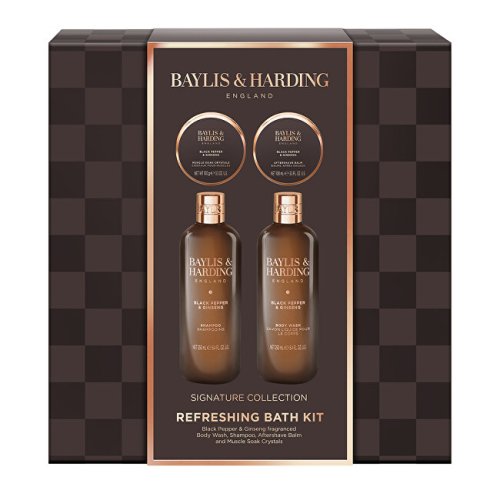 Sprchový gel (Body Wash) 250 ml Šampon na vlasy (Shampoo) 250 ml Balzám po holení (Aftershave Balm) 100 ml Krystaly do koupele (Soak Crystals) 100 g