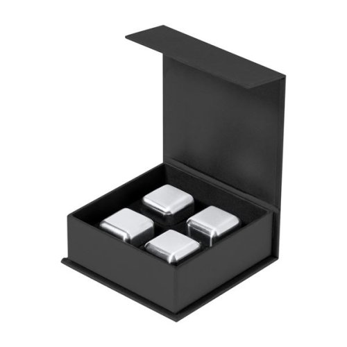 4-dílná opakovaně použitelná sada chladících kostek z nerezové oceli v černé dárkové krabičce