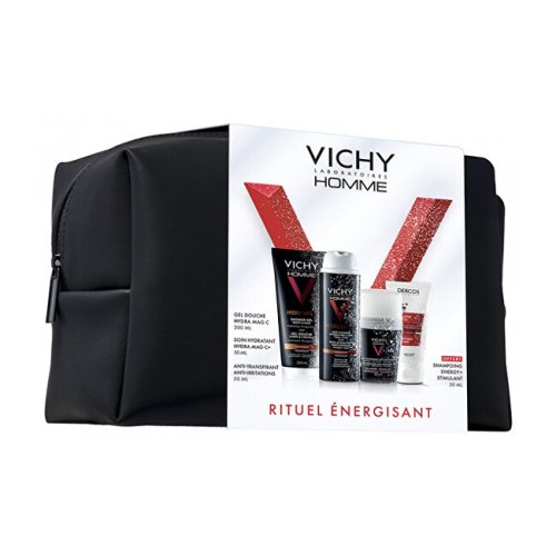 Hydratační sprchový gel Homme Hydra Mag C 200 ml Hydratační péče na pleť a oční okolí proti známkám únavy Hydra Mag C+ 50 ml Deodorant pro citlivou pokožku Homme 48H Deo roll-on (Anti-Transpirant Extra Sensitive) 50 ml Posilující šampon Dercos Energy+ 50 ml Kosmetická taška 1 ks