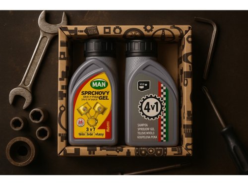 Dárkový kosmetický balíček obsahuje sprchový gel 250 ml „for men“ a sprchový gel 250 ml 4v1 – velice jemné pečující sprchové gely pro muže vhodné i k mytí vlasů.
