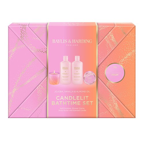 Rozmazlujte pokožku celého těla luxusními produkty a nechte se hýčkat vůní sladké vanilky, okouzlujícího mandlového oleje a jojoby. Užijte si chvíle relaxace a potěšení. Zapalte si svíčku, zhasněte světla v koupelně a ponořte se do bohaté pěny sprchového krému nebo dopřejte tělu příjemnou koupel. Po koupeli nezapomeňte hýčkat pokožku vyživujícím tělovým máslem. Luxusní kolekce Jojoba, Vanilla & Almond Oil je prezentována metalickými, ombré odstíny pastelově růžové a broskvové barvy s explozí třpytivých detailů, které společně s holografickým balícím papírem propůjčují kolekci ojedinělý vzhled inspirující se krásou poznání astrologie. Kolekci provází jemná a smyslná vůně vanilky, mandlového oleje a sladké jojoby. Vlastnosti:• čistí, hydratují a pečují o pokožku celého těla• s dlouhotrvající, sladkou vůní• dobře se vstřebávají do pokožky• svíčka pro intimní atmosféru• v luxusním balení "ready to gift" Sprchový krémSprchový krém vytváří bohatou pěnu, která šetrně čistí pokožku celého těla. Zanechá ji hebkou na dotek a krásně provoněnou okouzlující vůní.Použití: Naneste na vlhkou pokožku, napěňte a opláchněte. Pěna do koupeleVytváří bohatou a krémovou pěnu, která hydratuje a vyživuje pokožku celého těla. Zanechá ji hebkou, hladkou a příjemně provoněnou vůní jojoby, vanilky a mandlového oleje.Použití: Pod proudem vody vlijte do teplé vodní lázně. Tělové másloTělové máslo dodá pokožce těla potřebnou hydrataci, intenzivní výživu a zároveň uleví od pocitu suchosti. Zanechá ji hebkou, vláčnou a příjemně provoněnou jemnými tóny.Použití: Naneste na suchou a čistou pokožku. Vmasírujte, dokud se zcela nevstřebá. Vonná svíčkaSvíčka pro skvělou atmosféru provoní koupelnu a podpoří opravdový relaxační zážitek. Doplňující informace:• Vegan & Cruelty Free