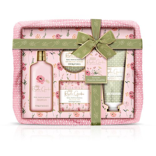 Nádherná dárková sada se bude vyjímat v každé koupelně. Rozmazlujte svou pokožku luxusními produkty. Sprchový krém: Nádherně hladký a bohatý sprchový krém je šetrný k pokožce, účinně čistí a vytváří intenzivní pěnu. Navíc zanechá pokožku hydratovanou a jemně provoněnou.Použití: Naneste na vlhkou pokožku, napěňte a důkladně opláchněte. Sprchový gel: Šetrně čistí pokožku, vytváří bohatou pěnu a zanechává pokožku hebkou na dotek. Navíc uvolňuje dlouhotrvající vůni.Použití: Naneste na vlhkou pokožku, napěňte a opláchněte. Krystalky do koupele: Voňavé krystalky uvolňují mysl, tělo a především ztuhlé svaly. Energická a povzbuzující vůně zaplní celou koupelnu.Použití: Nasypte do teplé vodní lázně a nechte rozpustí. Tuhé mýdlo: Šetrně čistí pokožku bez nepříjemného vysušování, vytváří bohatou pěnu a zanechává dlouhotrvající vůni.Použití: Promněte ve vlhkých dlaních, napěňte a opláchněte. Růže, Vlčí mák & Vanilka: Romantická květinová kolekce podložená typickým vzhledem anglických zahrad. Kolekce působí klasickým dojmem, aniž by byla staromódní. Starorůžové a zelené tóny jsou doplněné drobnými kvítky, které celé kolekci dodají poct jemnosti a ženskosti. Drobné geometrické vzory dodávají kolekci moderní a nadčasový nádech. Neužívejte vnitřně. Vyhněte se kontaktu s očima, vyhněte se okolí očí. Při jakýchkoliv známkách podráždění přestaňte používat. Bez parabenů, silikonů a ftalátů. Veganské a Cruelty free.