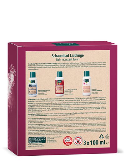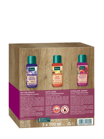 Dárková sada Kneipp Šťastné koupání potěší kamarádku, maminku, babičku i paní učitelku. V sadě najdete 3 různé pěny plné přírodních olejů a výtažků. Během koupele hýčkají pokožku celého těla, aby byla sametově hebká. Použité kombinace esenciálních olejů pomohou zmírnit stres či pocity napětí a zlepšit náladu. Po teplé voňavé koupeli se bude krásně usínat. Pěna Hluboké uvolnění obsahuje pačuli, extrakty z tropického dřeva a benzoové pryskyřice. Koupel s pěnou Staré dobré časy vyčaruje úsměv na tváři díky esenciálnímu oleji z červeného máku a konopí. Třetí lahvička využívá účinků i vůně mandlí, v pěně Mandlové květy najdete pečující mandlový olej a výtažky ze sladkých mandlí, které pečují o citlivou suchou pokožku. Výrobky jsou bez mikroplastů, parafínů, silikonů a minerálních olejů. Sada obsahuje:
