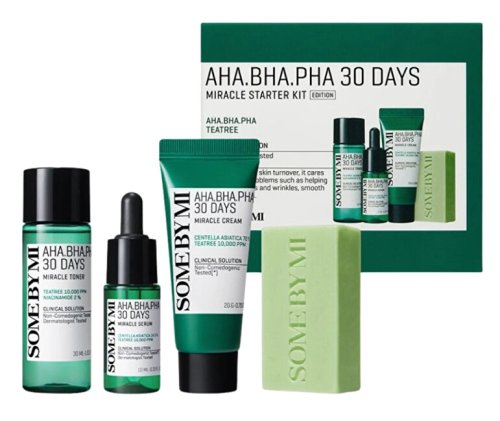 Exfoliační pleťové tonikum AHA BHA PHA 30 Days (Miracle Toner) 30 ml Zklidňující a exfoliační pleťové sérum AHA BHA PHA 30 Days (Miracle Serum) 10 ml Multifunkční pleťový krém AHA BHA PHA 30 Days (Miracle Cream) 20 g Čisticí pleťové mýdlo AHA BHA PHA 30 Days (Miracle Cleansing Bar) 30 g
