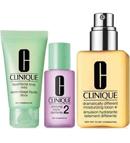 Intenzivní emulze k doplnění hydratace pro suchou až smíšenou pleť (Dramatically Different Moisturizing Lotion) 125 ml Čisticí tonikum pro suchou až smíšenou pleť (Clarifying Lotion 2) 30 ml Tekuté čisticí mýdlo na obličej All About Clean (Liquid Facial Soap Mild) 30 ml