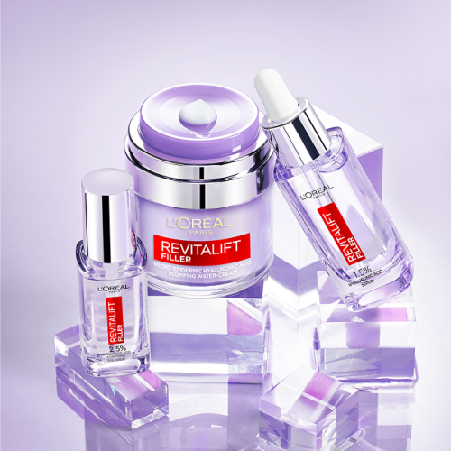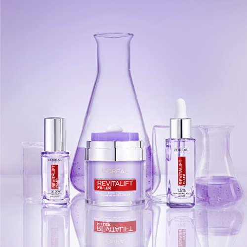 Sérum proti vráskám s 1,5% čisté kyseliny hyaluronové Revitalift Filler (Hyaluronic Acid Serum) 30 ml Oční sérum s 2,5% kyselinou hyaluronovou Revitalift Filler (Eye Serum) 20 ml