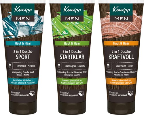 Na dobrodružné cesty, běžná všední rána i sportovní tréninky. Pánské sprchové gely dodají odvahu, radost a energii. V dárkové sadě Kneipp Sprchové trio pro muže najdete 3 sprchové gely se spoustou přírodních výtažků a olejů. Všechny můžete použít na tělo i vlasy. Díky kokosovému oleji a panthenolu dodají potřebnou dávku péče a hydratace. Sprchové gely obsahují esenciální oleje, které podporují sílu, optimismus, odvahu i koncentraci. Ucítíte například rozmarýn, pomerančovou kůru, eukalyptus, borovici nebo citronovou trávu. Sada obsahuje: