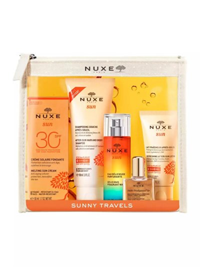 Opalovací krém na obličej SPF 30 Sun (Melting Cream High Protection) 50 ml Šampon po opalování na tělo a vlasy Sun (After-Sun Hair & Body Shampoo) 100 ml Osvěžující mléko po opalování na obličej a tělo Sun (Refreshing After Sun Lotion For Face And Body) 50 ml Tělová vůně Sun (Delicious Fragrant Water) 30 ml Multifunkční suchý olej se třpytkami Huile Prodigieuse OR (Multi-Purpose Dry Oil) 10 ml