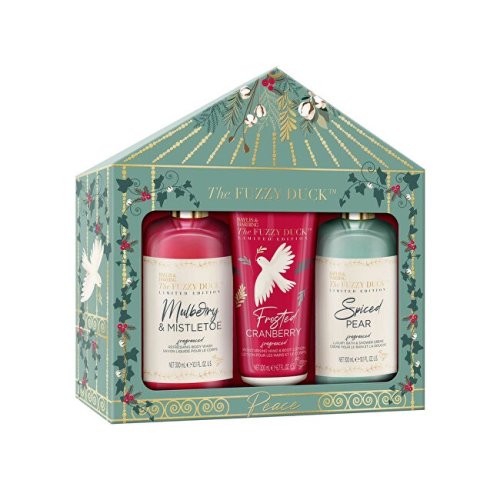 Sprchový a koupelový krém Kořeněná hruškaNádherně hladký a bohatý sprchový krém je šetrný k pokožce, účinně čistí a vytváří intenzivní pěnu. Zanechá pokožku hydratovanou a jemně provoněnou. Použití: Naneste na vlhkou pokožku, napěňte a důkladně opláchněte Mléko na tělo a ruce BrusinkaVýživné mléko dodá pokožce potřebnou hydrataci a úlevu od pocitu suchosti. Zanechává ji hebkou, vláčnou a příjemně provoněnou šťavnatou brusinkou. Použití: Naneste na suchou a čistou pokožku, vmasírujte, dokud se zcela nevstřebá. Sprchový gel Moruše & JmelíŠetrně čistí pokožku, vytváří bohatou pěnu a zanechává pokožku hebkou na dotek. Uvolňuje dlouhotrvající vůni pro pravou vánoční atmosféru. Použití: Naneste na vlhkou pokožku, napěňte a opláchněte. Upozornění:Pouze pro vnější použití. Vyhněte se kontaktu s očima a očním okolím.Při jakýchkoliv známkách podráždění přestaňte používat. Doplňující informace:Vegan & Cruelty Free