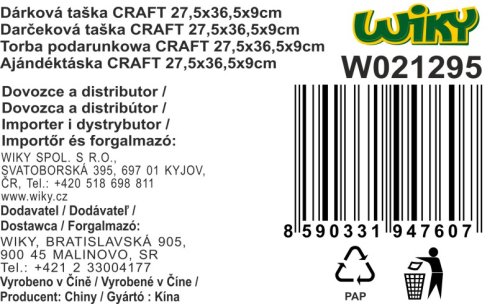 Dárková taška CRAFT L 27,5x36,5x9 cm 1 motiv