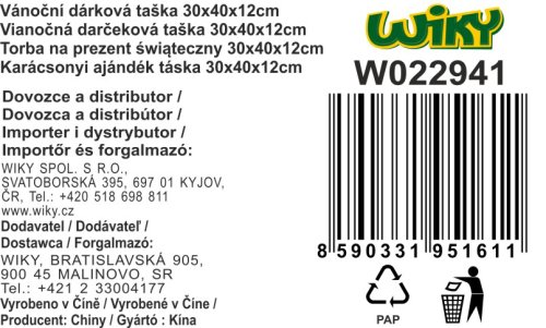 Dárková taška L 30x40x12 cm Vánoce. 4 různé motivy.