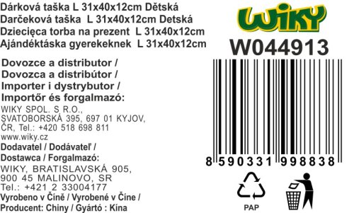 Dárková taška o velikosti L 31x40x12 cm Dětská. 4 druhy.