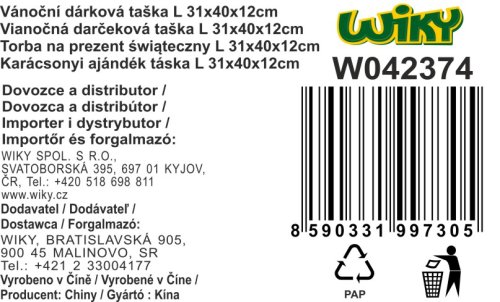 Dárková taška o velikosti L 31x40x12 cm VÁNOCE. 4 varianty.