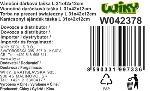 Dárková taška o velikosti L 31x42x12 cm VÁNOCE. 4 varianty.