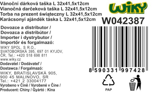 Dárková taška o velikosti L 32x41,5x12 cm VÁNOCE. 4 varianty.