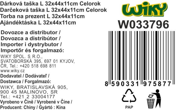 Dárková taška o velikosti L 32x44x11 cm celorok. 4 druhy.
