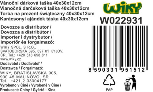 Dárková taška L 40x30x12 cm Vánoce. 4 různé motivy.