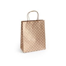 taška z kraftového papíru s ozdobnými metalickými puntíky