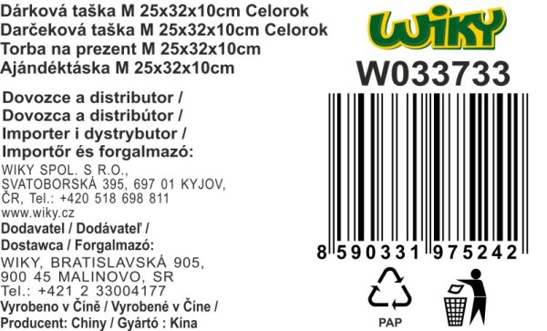 Dárková taška o velikosti M 25x32x10 cm celorok