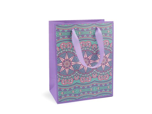 Dárková taška s motivem mandal je vyrobená z kvalitního pevného křídového papíru. Mandaly zdobí přední i zadní stranu tašky. Díky ucha ze stuhy tašku pohodlně uchopíte do ruky. Využijete ji k jakékoliv příležitosti a navíc vám ušetří čas při balení dárků.