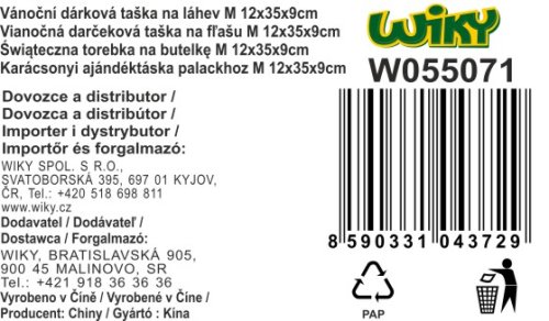 Dárková taška na láhev o velikosti M 12x35x9 cm VÁNOCE.