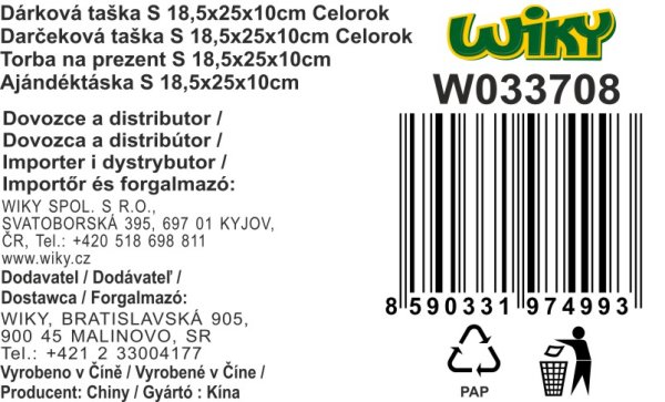 Dárková taška o velikosti S 18,5x25x10 cm celorok 4 barevné provedení: šedá, fialová, růžová, modrá