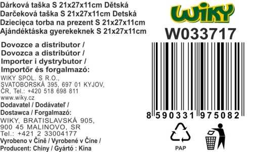Dárková taška o velikosti S 21x27x11 cm Dětská 4 motivy: (zebra, slon, lev, žirafa)