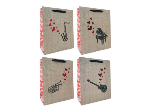 Velká dárková taška s motivem hudebního nástroje a srdíček, ideální pro hudební dárky. Její rozměry jsou 260 x 320 mm. Zboží je dodáváno v mixu. Doručované zboží je vybíráno náhodně a nelze vybrat konkrétní provedení.