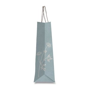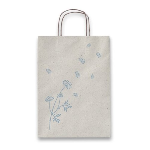 Dárková papírová taška SADOCH Allegra Carta Erba s atraktivními přírodními motivy v modrém odstínu. Vyrobena ze 100% recyklovaného bílého kraftového papíru, který obsahuje z 25 % sušená travní vlákna a ze 75 % recyklovaný papír. Na první pohled přírodní charakter a struktura papíru jsou doplněny lehkou vůní sušené trávy.