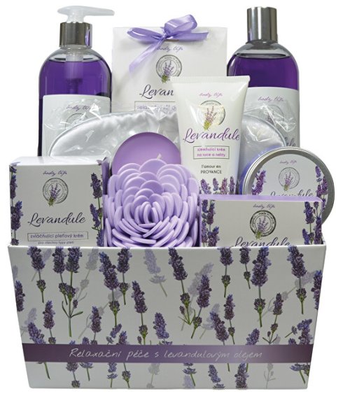 Krásné dárkové balení voňavé levandulové kosmetiky kosmetiky ve stylové papírové krabičce. Dopřejte sobě a svým blízkým příjemné chvíle relaxace s kouzelným nádechem Provence. Dárkové balení obsahuje: