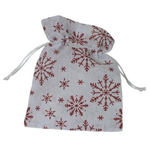 Dárkový látkový sáček, bílý s červenými vločkami,