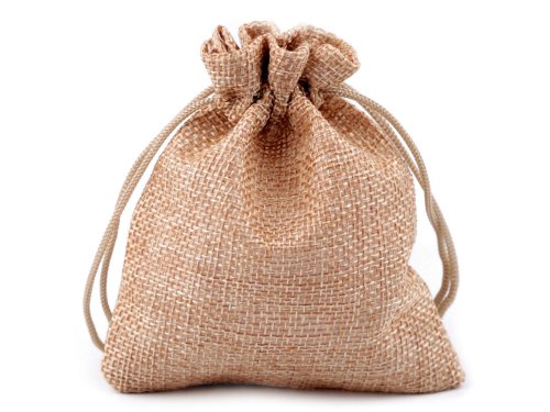 Dárkový pytlík připomíná svým materiálem přírodní jutu. [Uvnitř je podšitý netkanou textilií.] Snadno se uzavírá pomocí dvou stahovacích polyesterových šňůrek. Použití: Pytlík můžete využít k uskladnění sušených bylinek nebo sušených květů, například levandule. Je zajímavým obalem na dárek pro vyznavače rustikálního stylu.