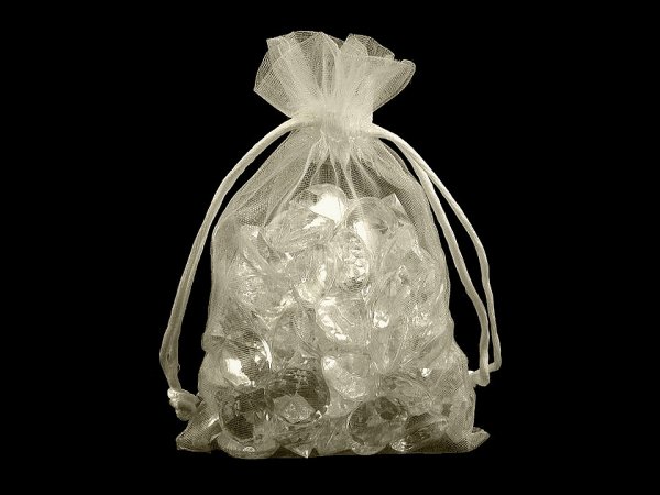 Dárkový pytlík je vynikající na zabalení menších dárků, například mýdla, drobné kosmetiky, korálkové bižuterie apod. Hodí se i k uschování voňavých sušených květů. Je vyrobený z jemně lesklé organzy. Snadno se uzavírá pomocí dvou stahovacích saténových šňůrek. Šňůrky jsou kulaté, výborně drží i bez zavázání na mašličku.