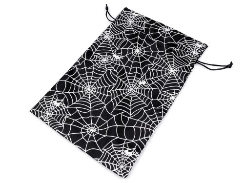 Dárkový pytlík s dekorem pavučin je vyrobený ze saténu. Snadno se uzavírá pomocí dvou stahovacích saténových šňůrek. Do pytlíku skryjete dárky na Halloween, maškarní bály a jiné příležitosti. Bude i krásnou stylovou dekorací.