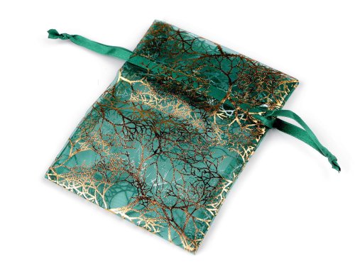 Dárkový pytlík zdobí zlatý metalický potisk větviček. Lze jej snadno uzavřít pomocí dvou stahovacích saténových šňůrek. Pytlík, vyrobený z organzy, je skvělým pomocníkem nejen při balení dárků, ale můžete do něj naaranžovat i sušené vonné květy apod. Je oblíbený i u příležitosti svatby na balení malých pozorností pro hosty.