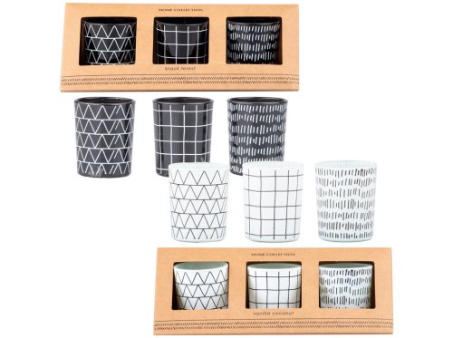 Objevte kouzlo jednoduché elegance s dárkovým setem tří vonných svíček ve skle z moderní řady Home Collection. Kombinace černé a bílé barvy perfektně zapadne do jakéhokoli interiéru — minimalistického, moderního i luxusního.