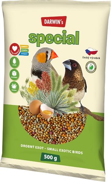 Proso žluté, proso červené, lesknice kanárská, mohár červený, oves nahý, Yucca schidigera, kvasnice, vejce.