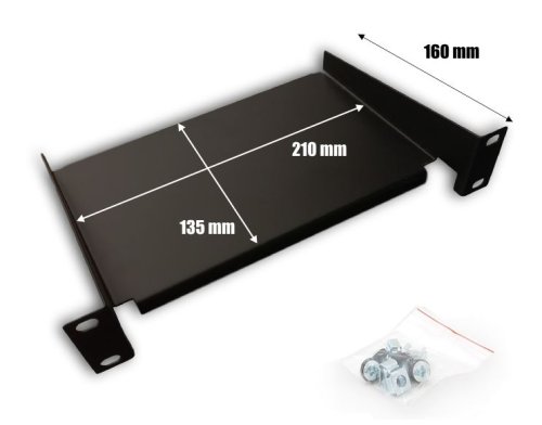 *velikost 1U *barva černá *nosnost 10kg *celková hloubka police včetně uchycení 160mm *samotná hloubka police bez uchycení 135mm *využitelná šířka police 210 mm *uchycení na přední lišty pomocí montážní sady (součást příbalu)