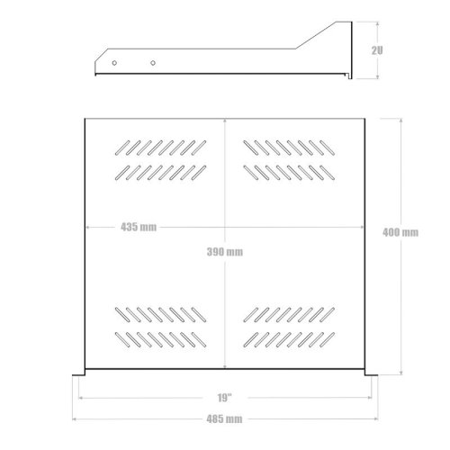 19" nízkoprofilová police 400 mm s uchycením 2U je vhodná pro umístění do 19" datového rozvaděče s hloubkou 600 mm a hlubší.
