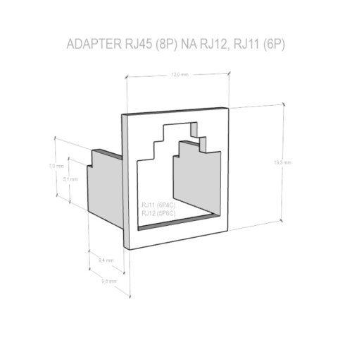 PŘEHLED Redukční vložka RJ12 (RJ11) určený do RJ45 portu. Vhodný pomocník při potřebě vložení RJ12 (RJ11) konektoru do RJ45 portu. Piny 1 a 8 zůstanou chráněny proti poškození.