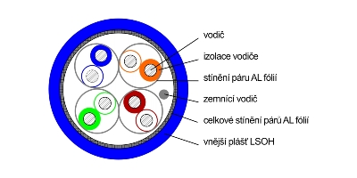 Instalační kabel kategorie 6A určený pro rozvody strukturované kabeláže. Díky dvojitému provedení stínění kabelu je vhodný pro umístění do náročnějšího vnitřního prostředí.