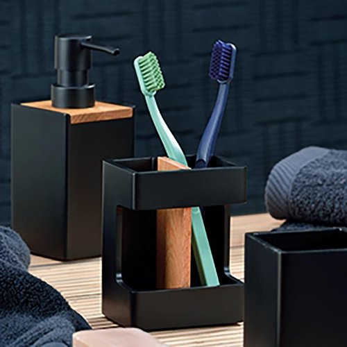 Polyresin, matná černá, dubové dřevo 7x7cm, 17,5cm v