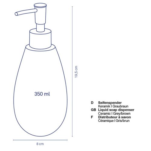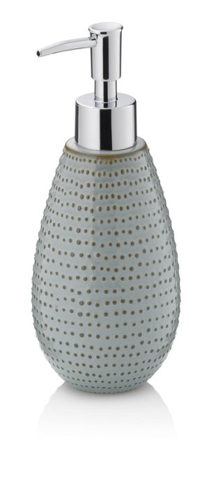 Speciální dávkovač mýdla ze série Dots. Vizuálně zachovalý v šedohnědé barvě je tento exemplář něčím výjimečný. Takzvané tečky jsou vystouplé a jsou tedy cítit, když dávkovač mýdla držíte v ruce. Rozměry: výška 19,5 cm, objem 350 ml. Keramická lesklá 8 cm, v. 19,5 cm
