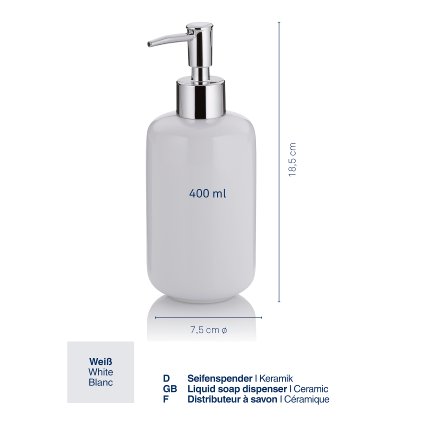 • materiál: keramika- lesklý povrch- chromovaná pumpička- objem: 400 ml- výška: 18 cm- průměr: 8 cm
